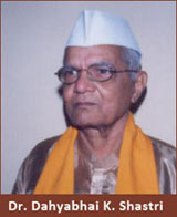 Respected Dahyabhai Karunashankar Shastriji born in Vasai Dabhla village of Vijpur taluka of Mahsana distrct, on 26 Februare of 1926.He has completed his education in Sankrit from Ahmedabad and Varasani and became expert in Grammar and Literature.