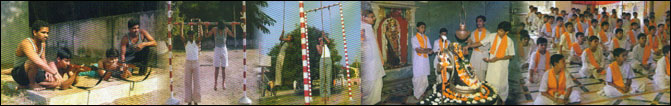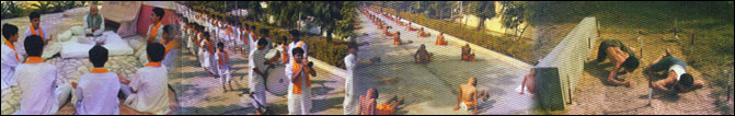The daily routine of the students of Bramarishi Sanskar dham begins at 5.00 am. After having Morning Plater, bath, sandhya vandan ect. all the students perform “Rudraabhishek” at 7.00 am in the temple. Thereafter they gather in the huge assembly ground to do “Suryanamaskar” .At 8.00 am they have breakfast and from 8.30 to 11.30 theystudy Vedas and English. All the students have their lunch in the dining hall. Between 12.00pm to 5.00 pm they study various subjects in Sanskrit languge. Students maintain their physical fitness by taking part in the different sports and exercise between 5.00 pm and 6.00 pm, at 6.00 pm students do the evening prayer and recitethe Shiva mahimna strotra. At 8.00 pm they have their dinner and after that they do their homework and prayer. At last by 10.00 pm students go to sleep… this well planned daily activity of the Brahmarisihi Sanskar dham imbibe the values of our culture and are determined to save the culture. |